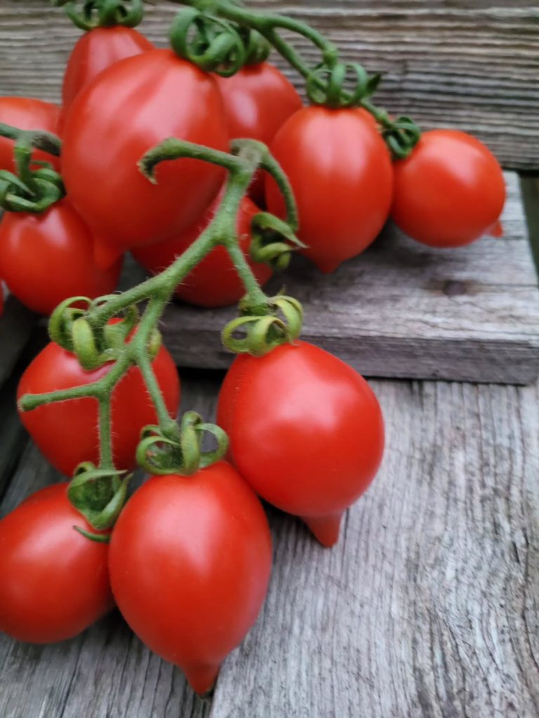 A Grappoli Corbarino – Gammal högväxande italiensk sort, ger röda tomater på ca 15 g med varierande form… Finns både med rundare tomater och med mer ovala, plommonformade. Tomaterna är fasta med tjockare skal och spricker inte så lätt. Har en utvecklingstid på ca 70-75 dagar. Beskrivs ha bra hållbarhet, oklart hur länge de går att lagra. Köp A Grappoli Corbarino hos Meraki Seeds