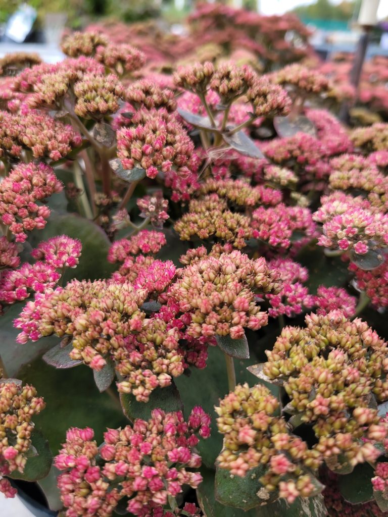 Karfunkelstein – Zon okänd men övervintrar fint här hos mig i zon 4. Blir ca 50-60 cm hög och rosa blommor med dovt grönrödlila blad. Har ett lite luftigare växtsätt än vad klassisk kärleksört brukar ha. Trevlig färgklick i den höstblommande rabatten, fin att kombinera med grönare, tätare kärleksört som Herbstfreude.