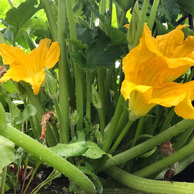 Pumpa är insektspollinerad, vilket innebär att om du försöker överlista vädret och odlar alla dina plantor i växthus (oj, vilket stort växthus du behöver då) så behöver du agera insekt och sköta pollineringen för hand om det ska bli nån skörd. Tidigt på säsongen brukar hanblommorna bildas (de är mindre med jämnsmal stjälk), honblommorna (är ofta blekare, har en lite mer svullen stjälk med fruktämne vid blombasen) brukar komma senare vid högre temperatur, först efter att den riktiga värmen kommit igång.