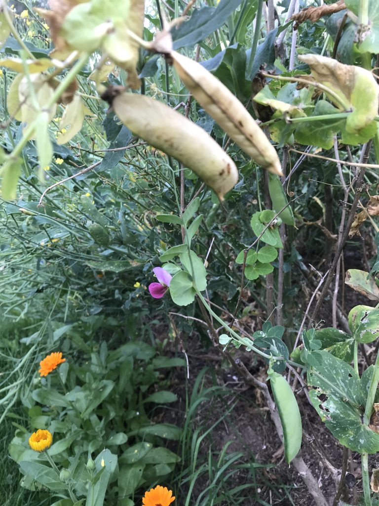 Solleröärt på hösten med blomma, färska ärtor och torra baljor. Foto: Agneta Magnusson