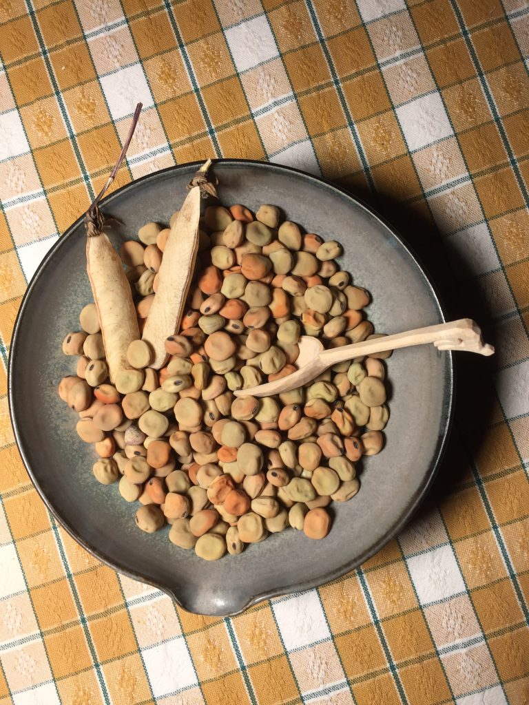 På de torkade ärtorna på fatet syns frömärket tydligt. Foto: Agneta Magnusson