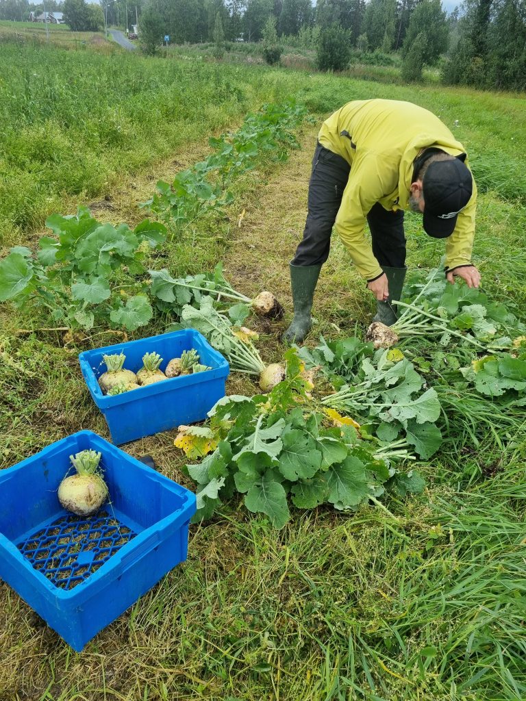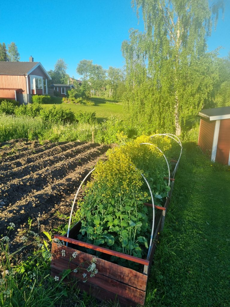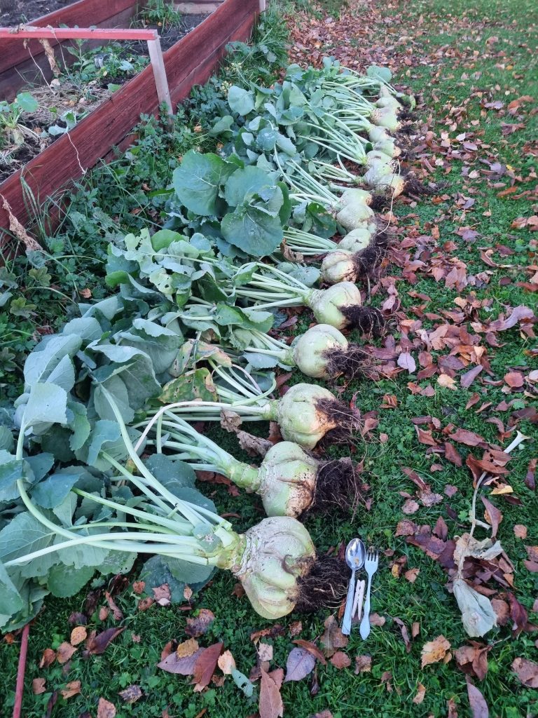Kålroten odlas både hemma hos olika personer och i en gemensamhetsodling vid hembygdsgården. Hemma hos mig växer den i upphöjda bäddar med täckodling, men ärligt talat – det behövs inte. På hembygdsgården odlas den direkt på friland, utan extra gödsling eller vattning (regnet i Jämtland gör sitt), och den trivs minst lika bra där!