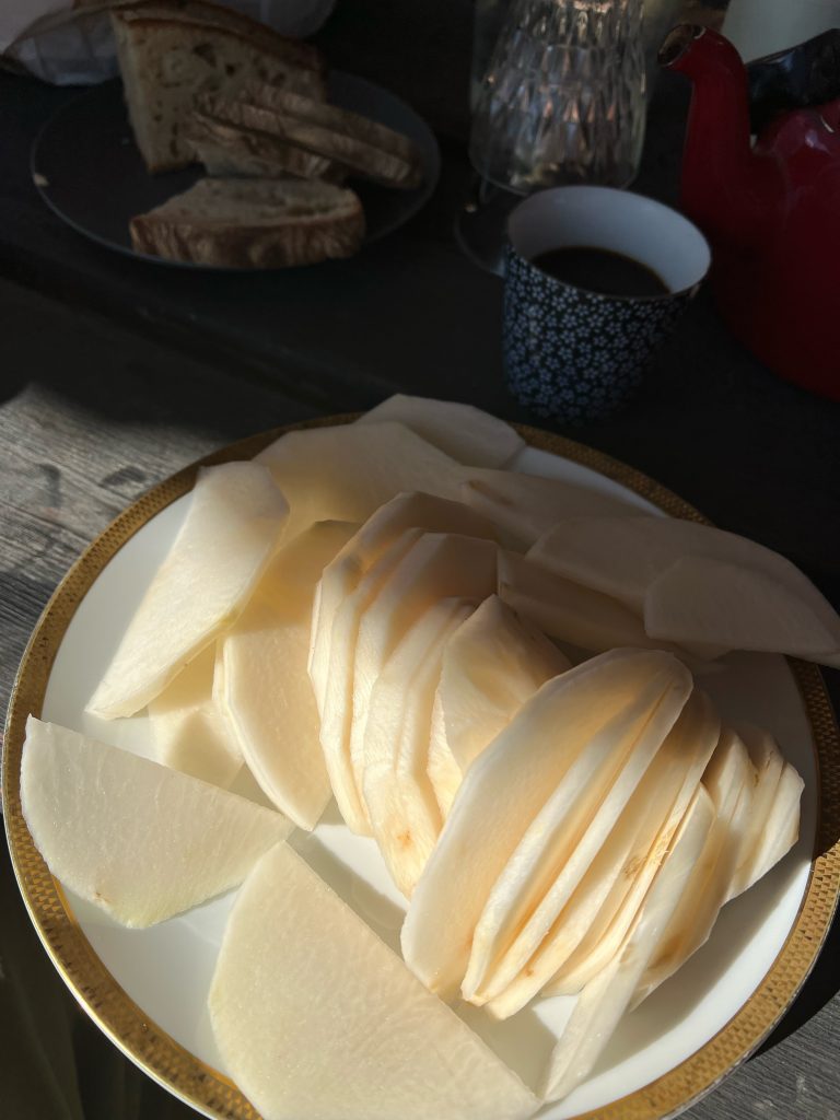 När jag först fick smaka ’Vintjärn’ kunde jag inte tro att det var en kålrot. Knaprig och saftig, och så fruktig att man kan föreställa hur det skulle smaka om man kunde korsa rädisa med äpple. Den är nästan allra godast rå.