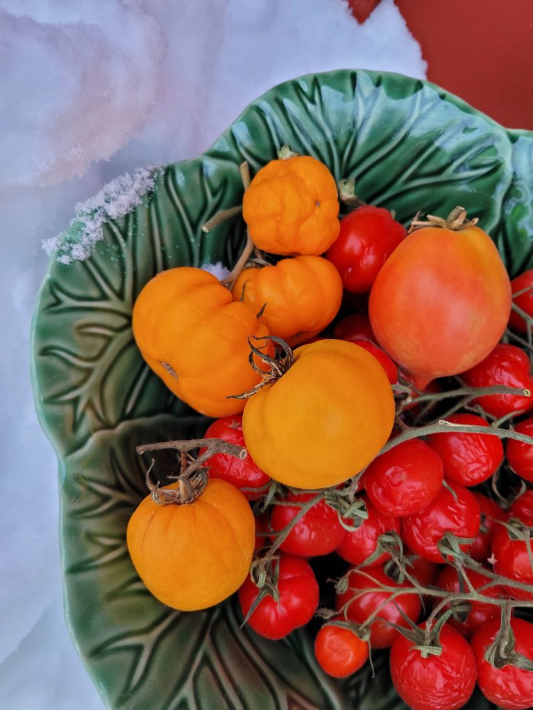 Måste man odla på det här sättet…? Nä, såklart inte. Men det passar mig utmärkt. Mitt mål är att få en lång säsong som sträcker sig över hela året. Och det får jag. Just iår fokuserar jag mer än vanligt på hälsa och kommer därför fokusera lite extra på tomatsorter som sägs innehålla högre halter av lykopen (vissa har translykopen och andra tetra cis-lykopen) och betakaroten. 🙂