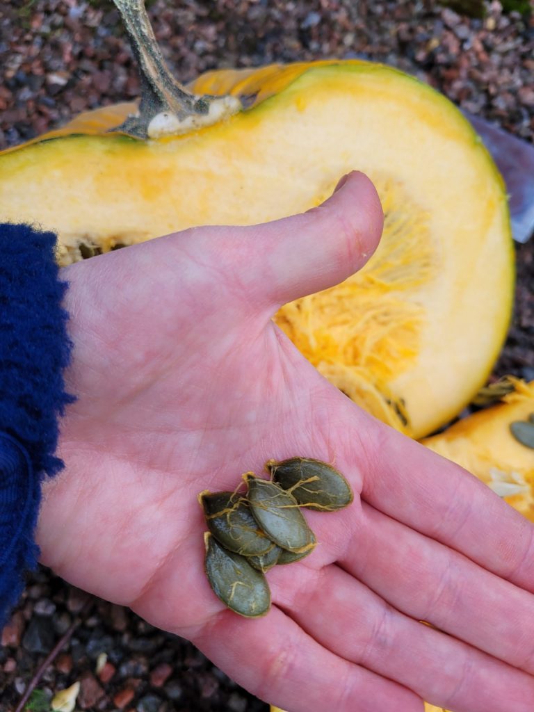 Tänk vad lyxigt med eget pumpafrö. Kanske du också ska satsa på nån nakenfröpumpa i odlingen iår…? 😀