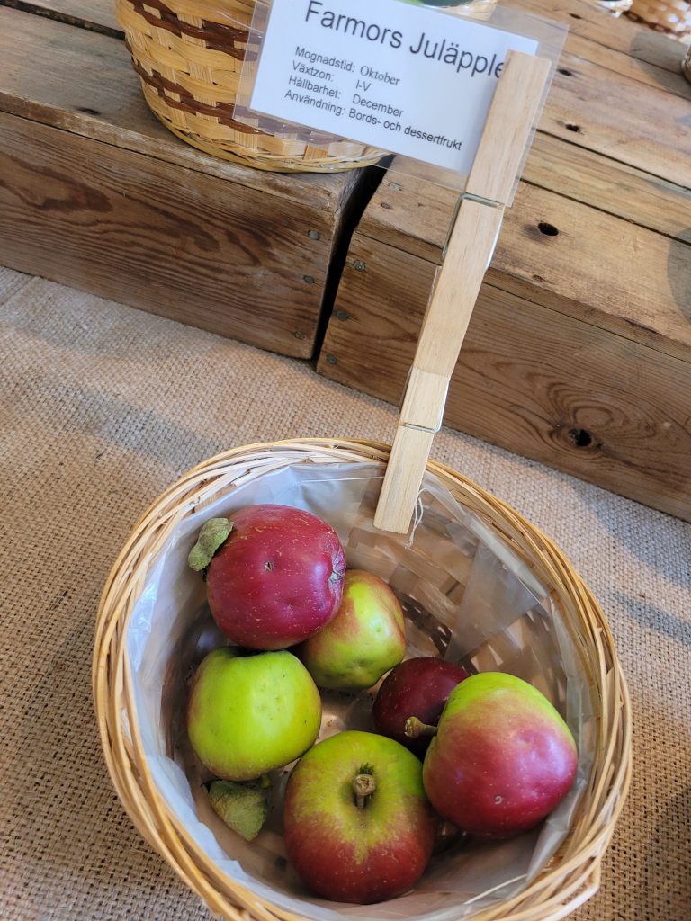- Äpplen: Edsele, Farmors Juläpple, Förlovningsäpple, Kramfors